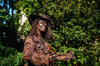 Onder begeleiding van speelse accordeonmuziek vertelden de standbeelden vol overgave elk hun eigen verhaal. Ze deelden alle 3 een gemeenschappelijk thema: hun keuze om in een vorig leven het goede te doen. En dat verdient… jawel, een standbeeld.